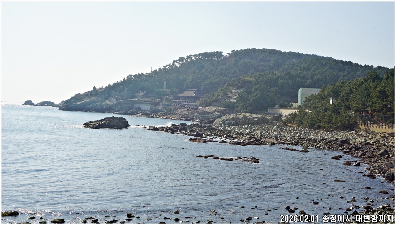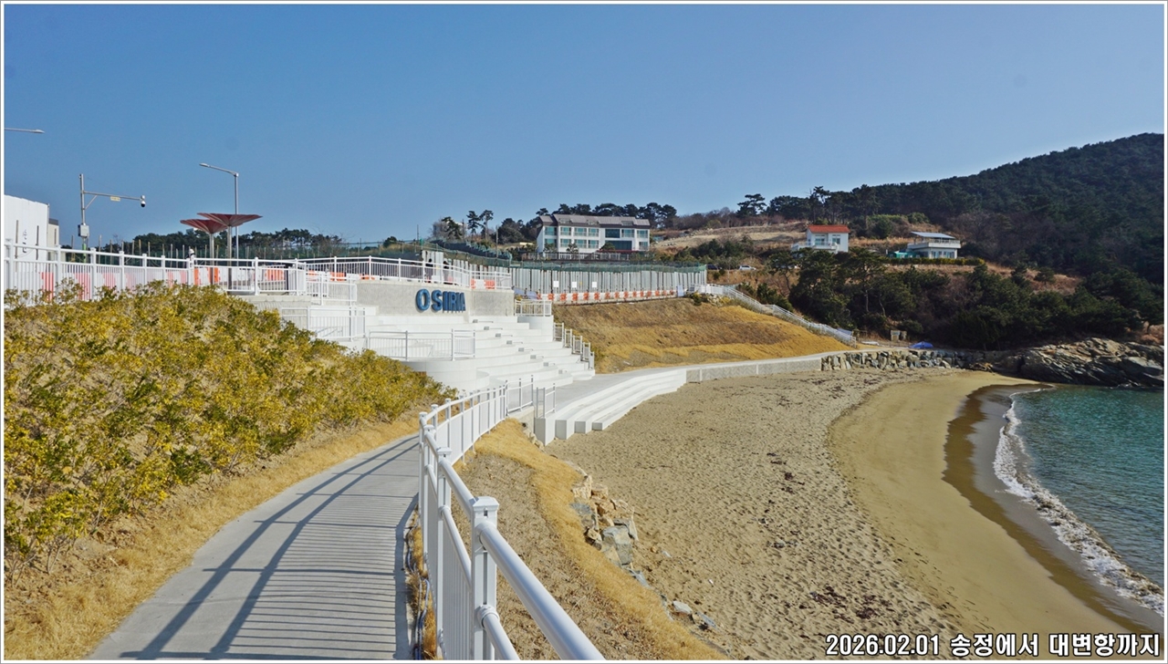 └▶ 오시리아 근처의 작은백사장을 휘감으며 해안의 길을 따라 시랑대 용궁사로 이어가고...