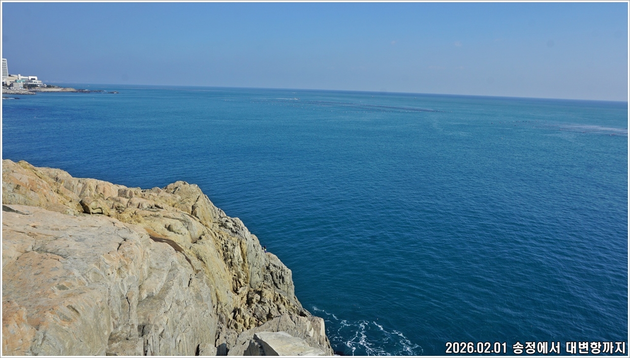 오시리아 해안에서 남향으로 구덕포,청사포까지 해수면에 아련히 낮익게 펼쳐지는 모습들이